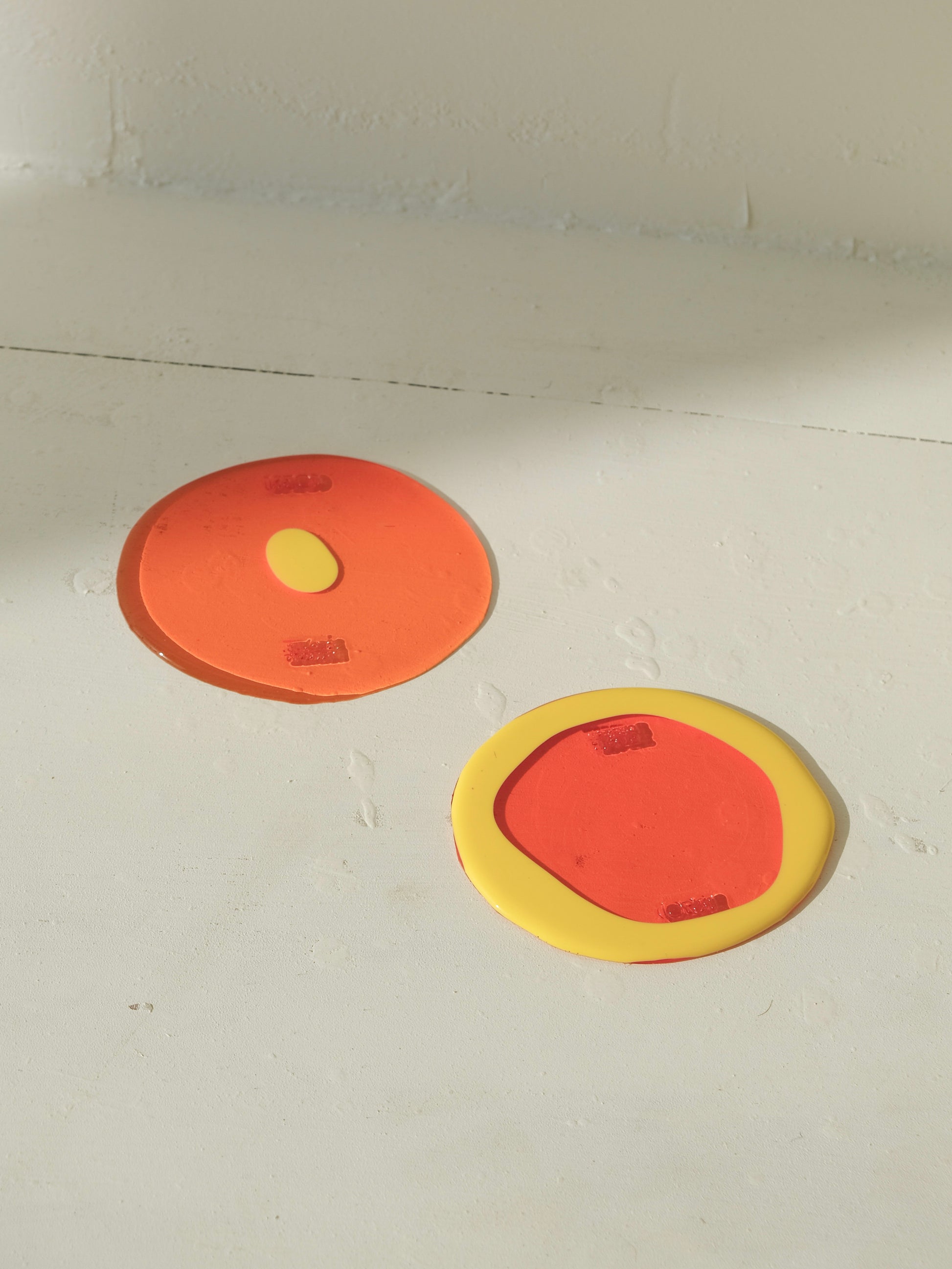 Set of 2 Table-Mates Small design by Gaetano Pesce for Fish Design,Matt Pastel Yellow/Clear Orange